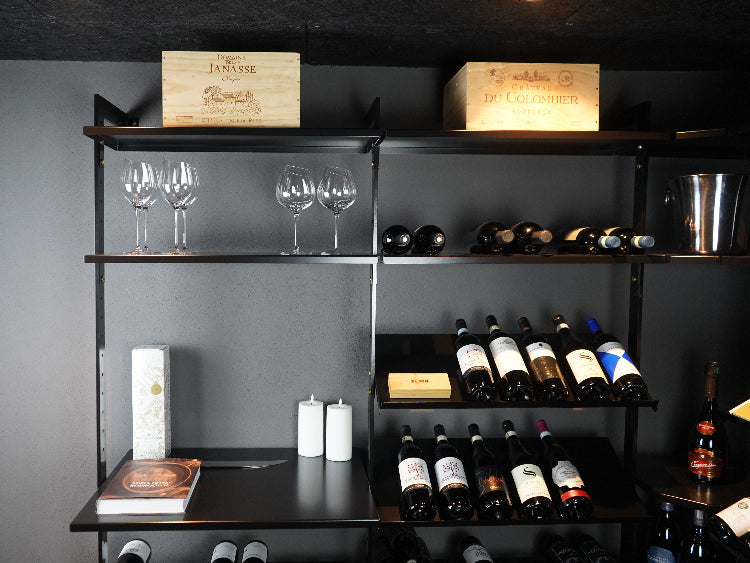 Vinreol Forlængermodul AXIS 71 x H205 cm – Sortlakeret 7 hylder (1 plan / 6 vinleje)
